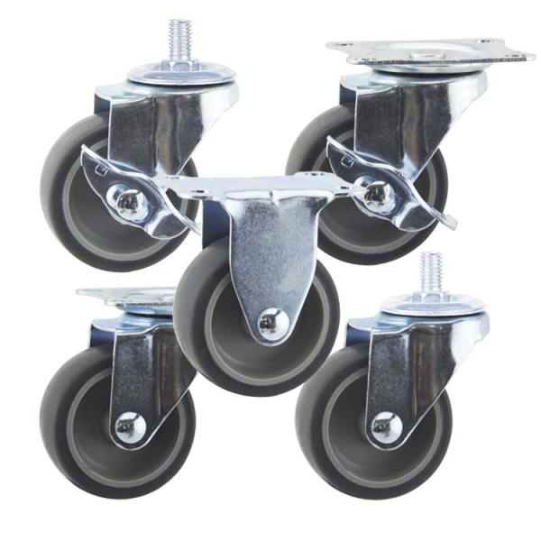 This is a kind of soft rubber tread on wheel light duty casters, can be used in many applications, mainly for furnitures like sofa, table, chair etc They are low noice and floorprotecting.